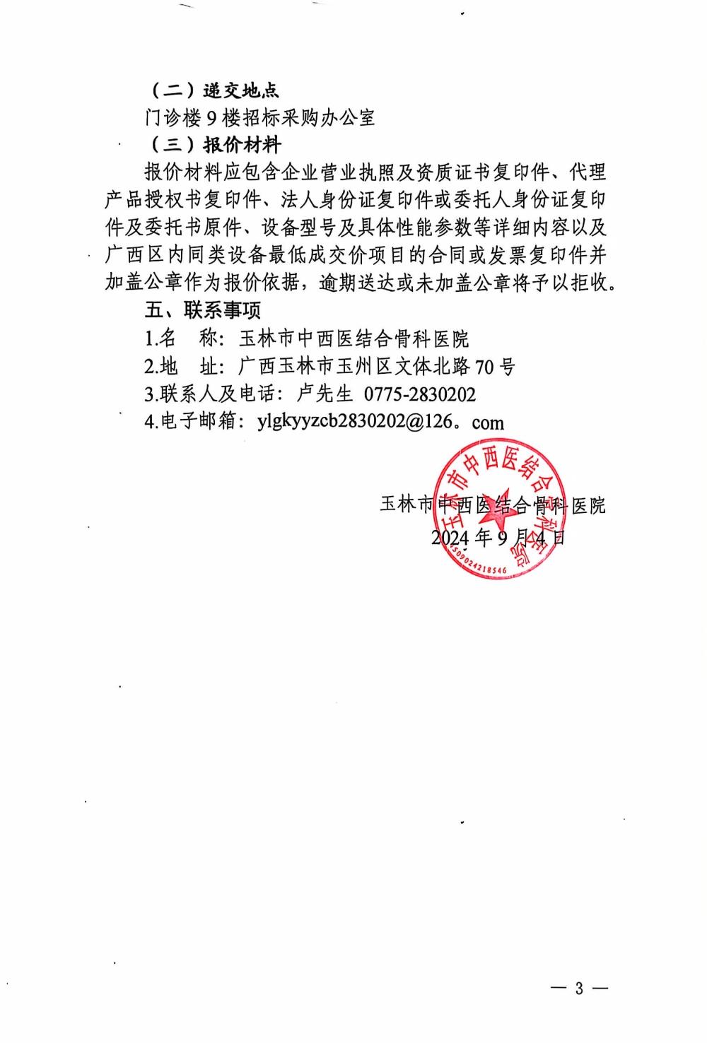 玉林市中西医结合骨科医院关于部分制剂生产检验设备的市场调研问询公告