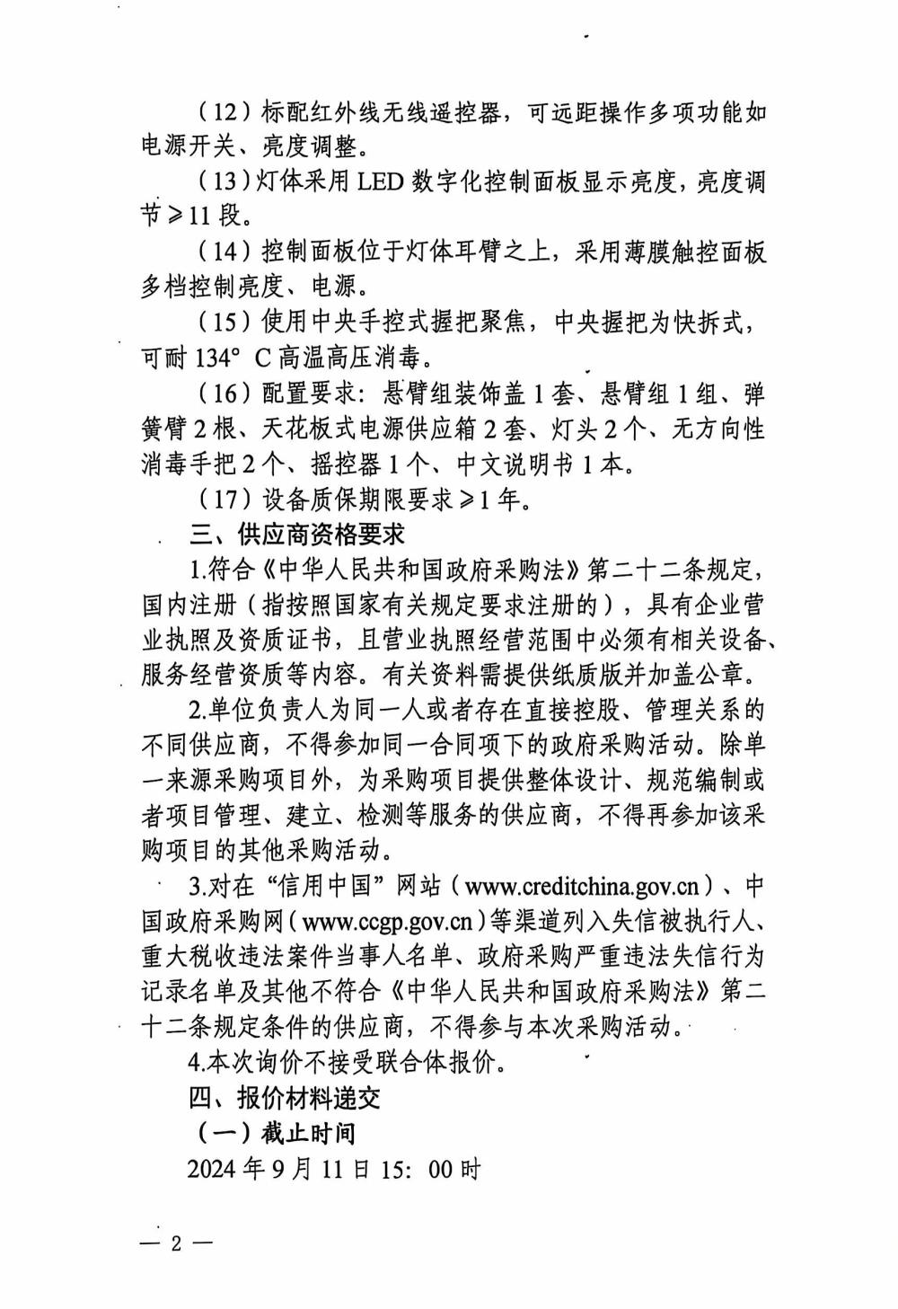 玉林市中西医结合骨科医院手术无影灯采购项目询价公告