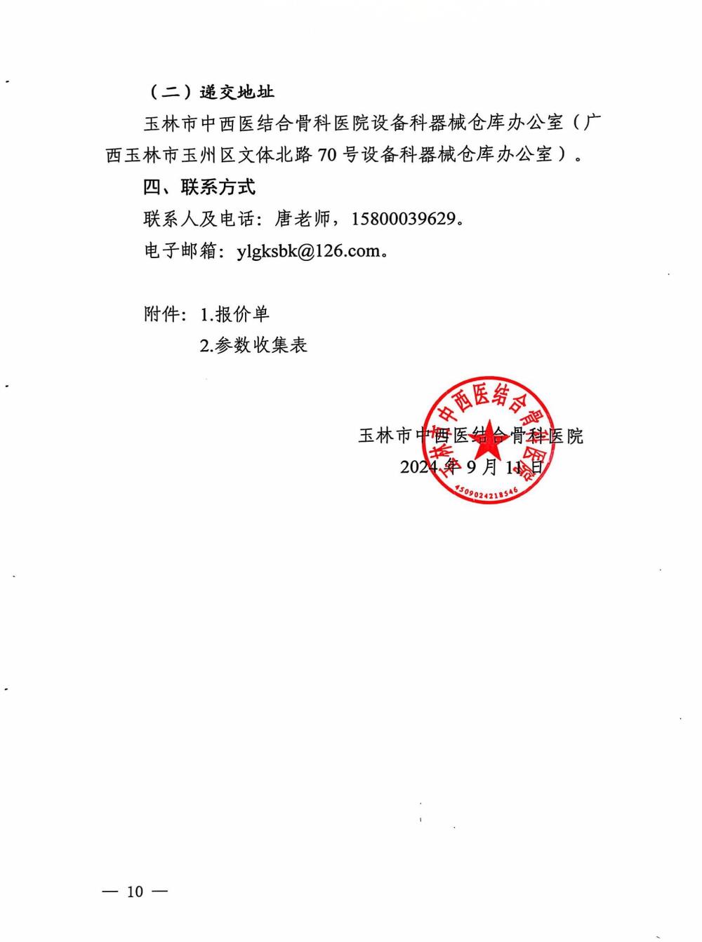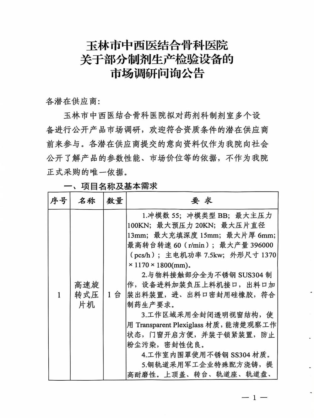 玉林市中西医结合骨科医院关于部分制剂生产检验设备的市场调研问询公告