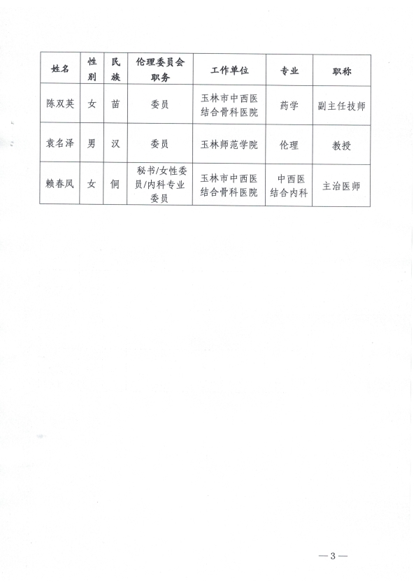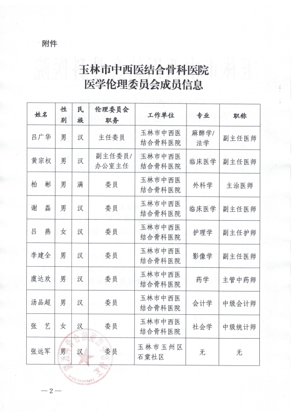 玉林市中西医结合骨科医院关于调整医学伦理委员会成员的通知
