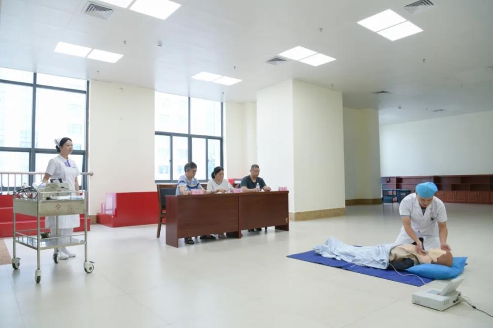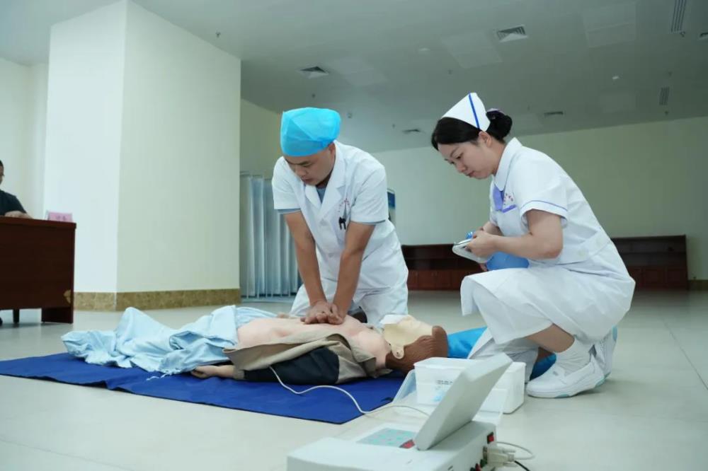 双人成人心肺复苏(CPR)操作是本次竞赛的重点。参赛选手展现出了极高的专业水准。他们动作迅速而准确,从判断患者意识、呼救、摆放体位,到胸外按压、球囊面罩通气、电除颤,每一步都严格按照急救操作标准执行。评委们专注细致观察着每一个细节,确保评分的公正与准确。比赛现场气氛紧张而激烈,选手们全力以赴,力求在模拟的紧急情况下,展现出最佳的急救技能。