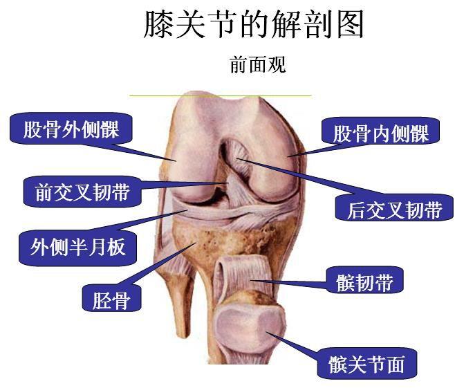 膝关节是人体最大且最复杂的关节。膝关节的主要结构包括股骨下端、胫骨上端、髌骨之关节面,膝关节之所以能活动自如又不会发生脱位,主要是前、后十字韧带、内侧韧带、外侧韧带、关节囊及附着于关节附近的肌腱提供了稳定性。
