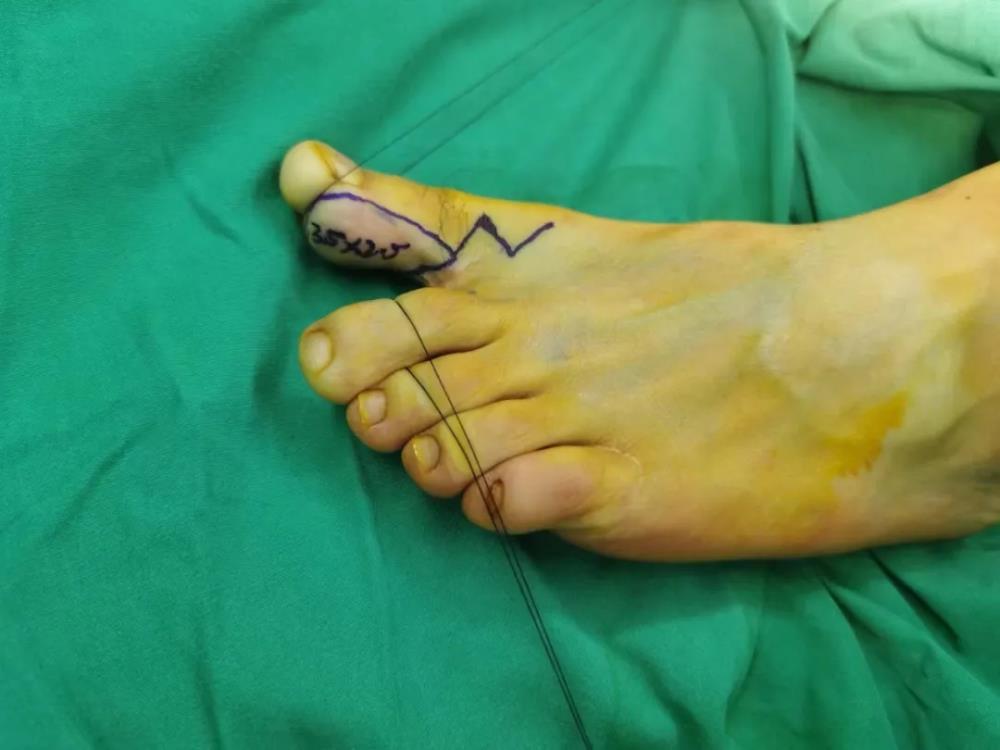 踇腓侧皮瓣比起传统皮瓣能取得如此出色效果的原因在于:首先,在血供方面,踇腓侧瓣的血供来源于踇趾腓侧的固有血管,其血管分布相对稳定且丰富。其次,手脚的组织质地与受区皮肤较为接近,厚度适中,在修复过程中能更好地与周围组织匹配,无论是外观还是功能恢复都更具优势。再者,对足部功能的影响可以控制在较小范围内。此外,在手术操作难度上,虽然需要在显微镜下进行操作,但一旦成功,其在修复效果上的优越性是传统方法难以比拟的。在应用范围方面,它主要适用于手部、足部等部位的中小面积软组织缺损的修复,尤其在需要恢复精细感觉和功能域有较好的效果,并且踇腓侧瓣手术比起传统的皮瓣修复术不仅外表美观耐磨,还保留了指纹,患者的远端部分感觉也会逐渐恢复,这是最难能可贵的。患者术后恢复快,这更是实实在在解决了患者的困扰。