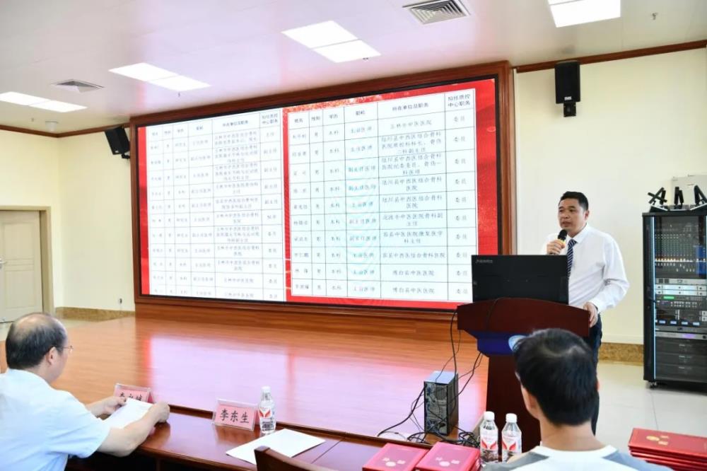 通过选举,大会通过了玉林市中医运动医学质控中心的组织架构和第一届委员会的名单共21人,经委员会全体委员表决通过,玉林市中西医结合骨科医院院长唐继仁当选中心主任委员,我院膝关节病与运动损伤科主任黄丽雄及肩关节科主任李永斌、玉林市中医医院骨伤科主任李东升、容县中西医结合骨科医院医务科副主任潘文剑4名专家当选副主任委员(排名不分先后)。随后我院副院长李开静副院长、医务科负责人梁周为第一届委员会成员颁发了聘书。