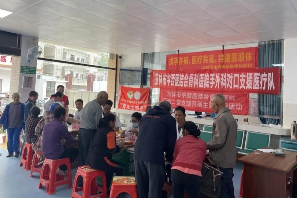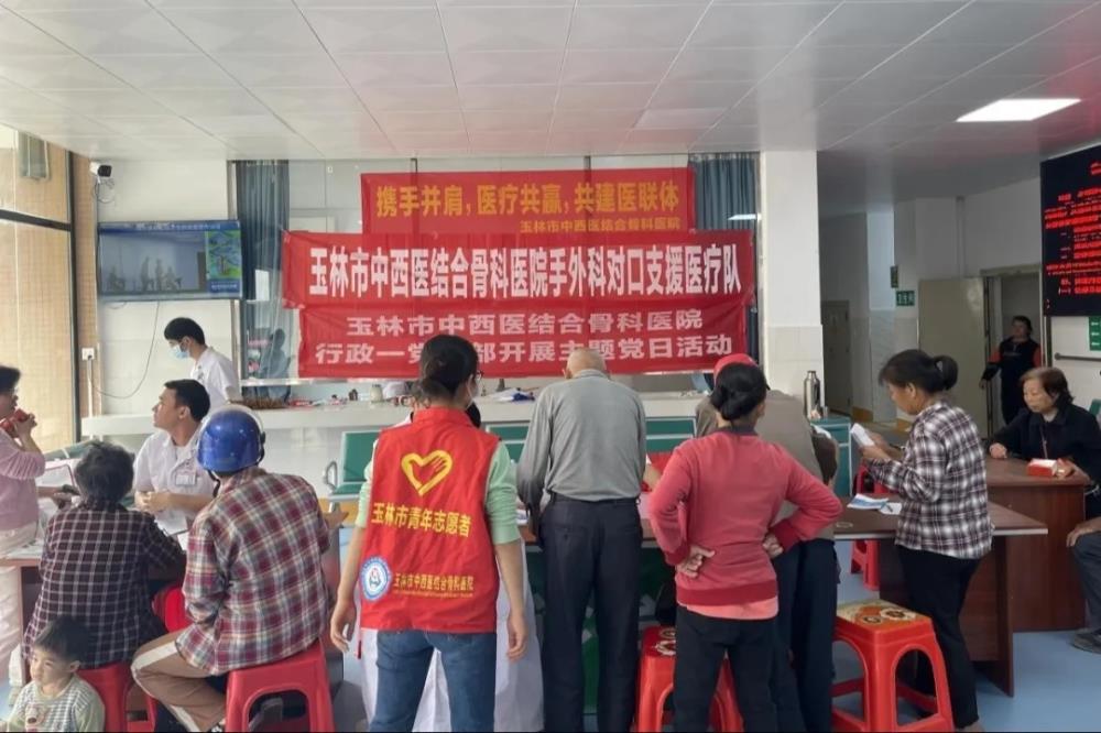 为贯彻国家医改精神、推进三甲医院带动基层的服务模式,充分发挥玉林市中西医结合骨科医院技术辐射作用,提升基层卫生人才队伍综合素质,促进基层医院卫生健康事业的发展,让中医药的智慧和服务惠及广大人民群众。近日,玉林市中西医结合骨科医院手外科党支部、行政一党支部、行政二党支部及医护人员前往陆川县横山镇卫生院开展“服务健康,骨科相伴”主题党日义诊及技术推广活动,发挥党建引领示范作用,方便群众就医,增强健康意识。