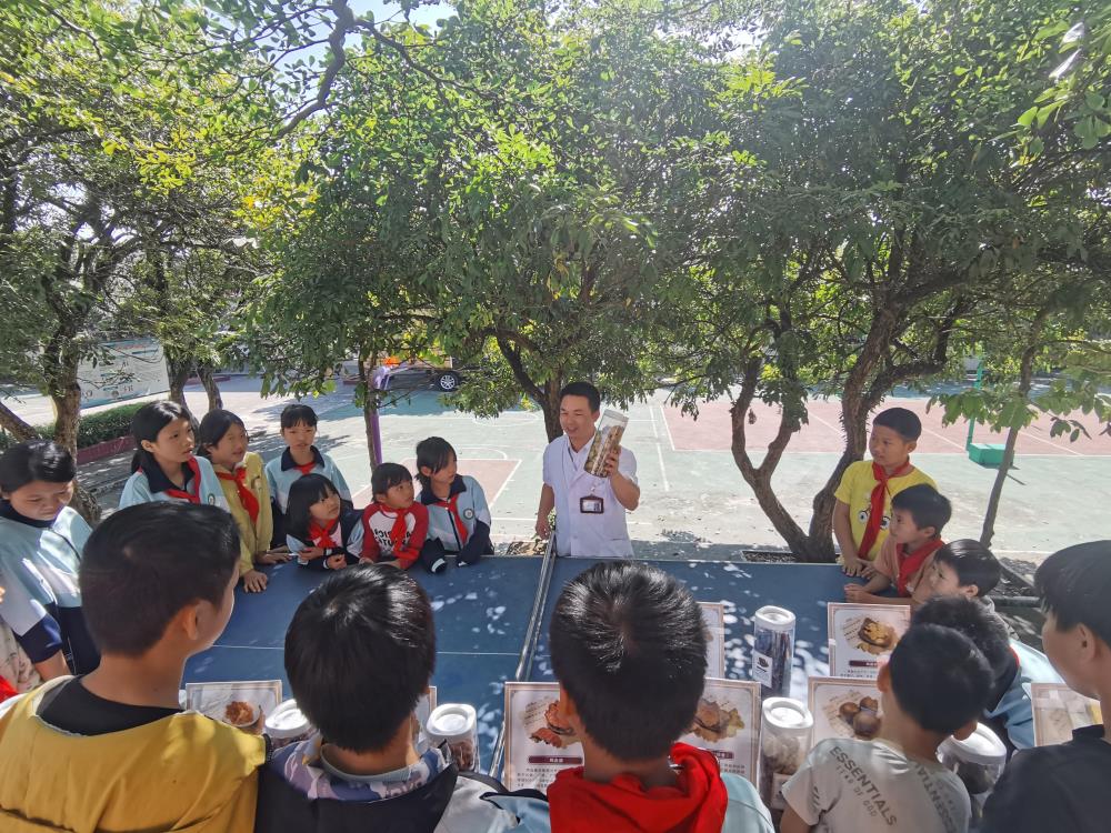图为成均镇中心小学中医药科普环节
