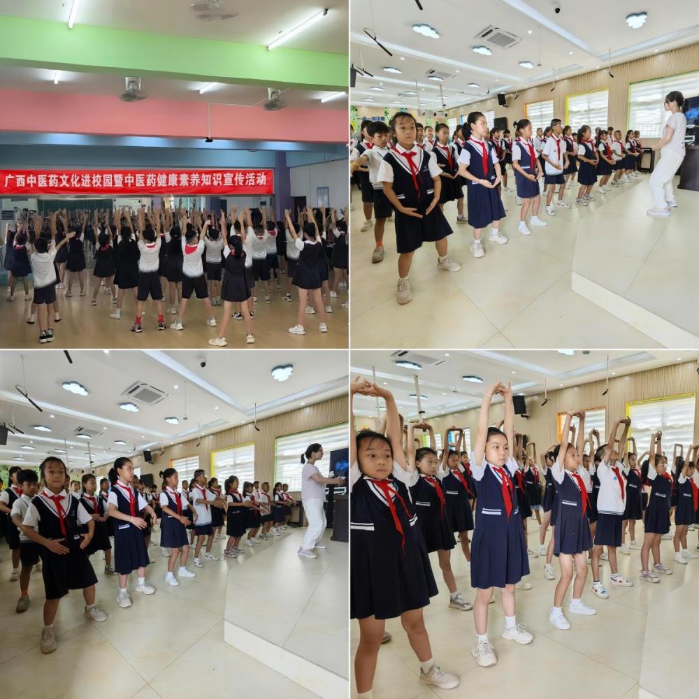 在玉州区第五实验小学,玉林市中西医结合骨科医院的科普小组成员向学生们传授了中医养生功法——八段锦。这套传统健身功法因其易于学习和效果显著而受到广泛喜爱,能够有效帮助学生放松身心,增强体质。在活动中,科普人员细致地指导学生掌握动作要领,并讲解了八段锦的养生原理及日常练习方法。学生们积极参与,认真学习,纷纷表示愿意将这套功法融入日常生活中。