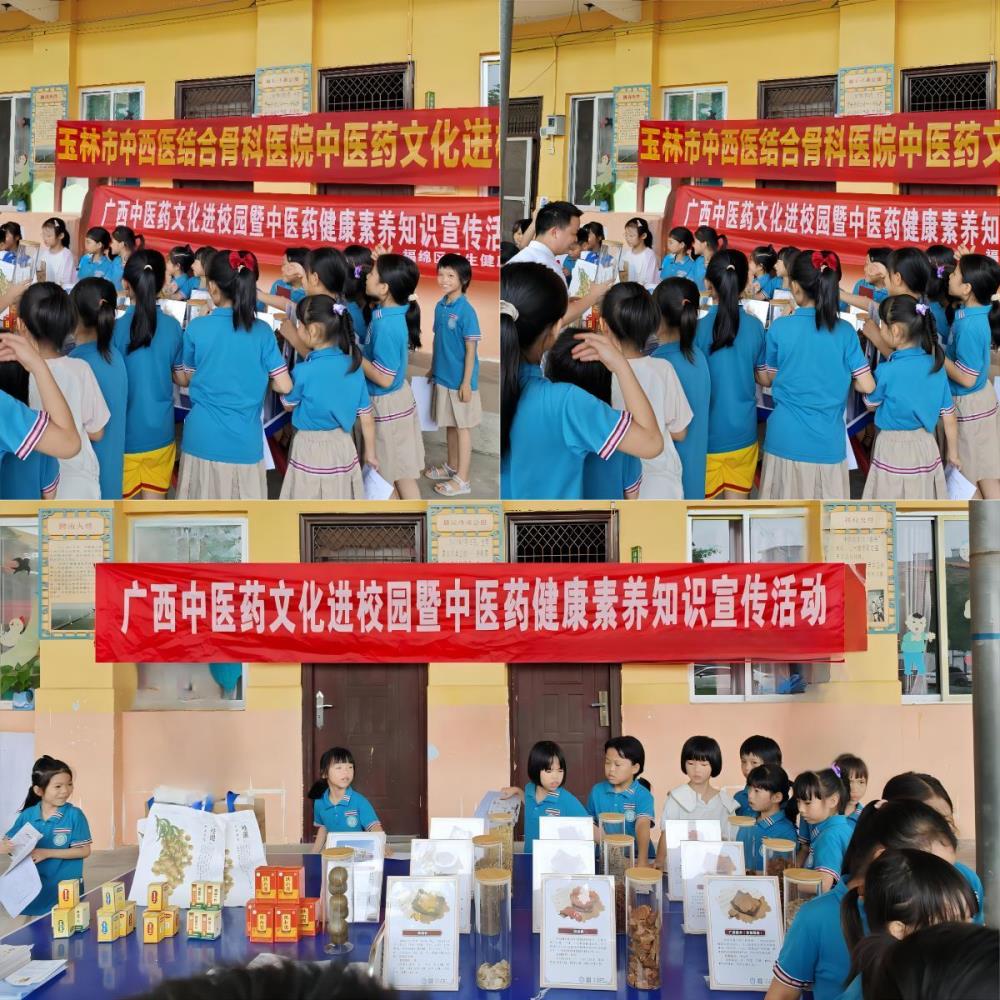 为积极促进广西中医药文化的传播与普及,并提高公众对中医药健康文化的认识,玉林市中西医结合骨科医院积极贯彻“广西中医药文化内涵提升工程”的指导方针,广泛实施中医药文化“五进”活动,深入校园、社区、基层医院等场所,传播中医药文化。近期,玉林市中西医结合骨科医院深入福绵区及玉东新区的多所中小学校,举办了一系列内容丰富、形式多样的中医药文化科普活动,向青少年普及中医药知识,助力传统医药文化在校园内生根发芽。以下是此次校园系列活动的精彩回顾。