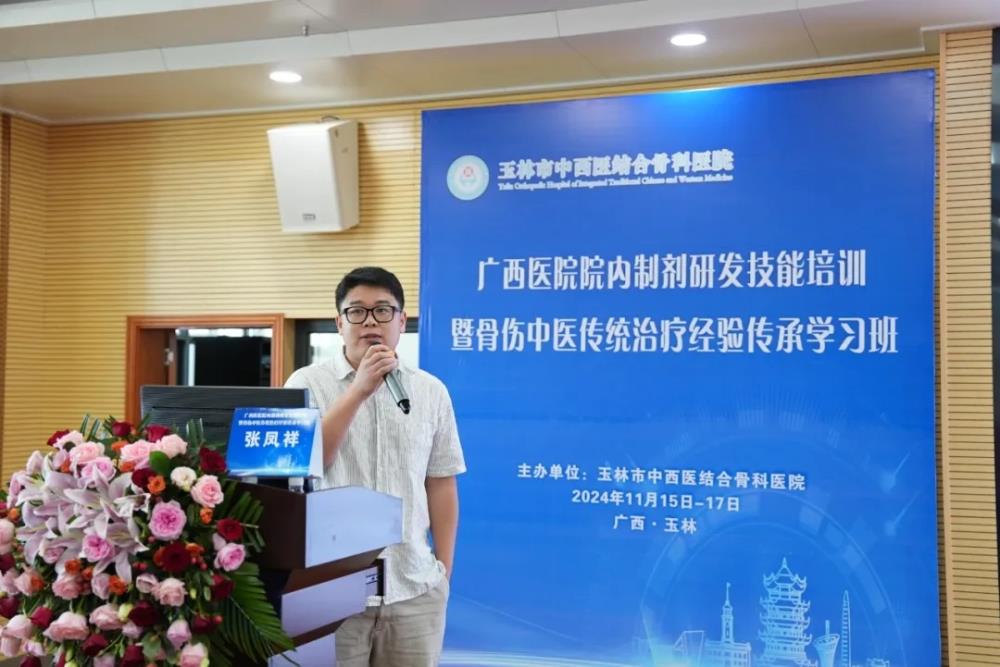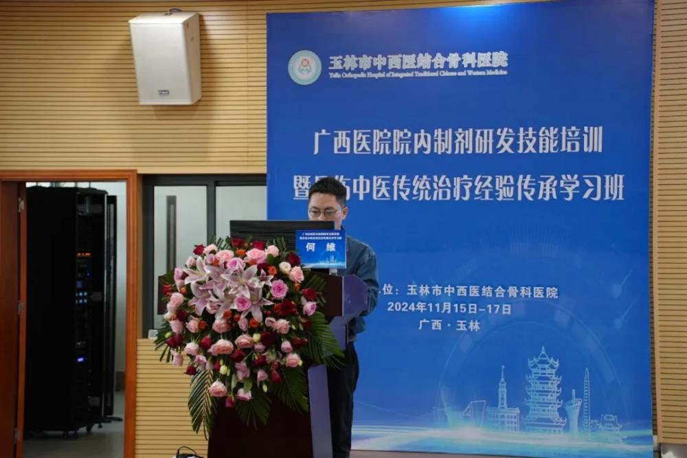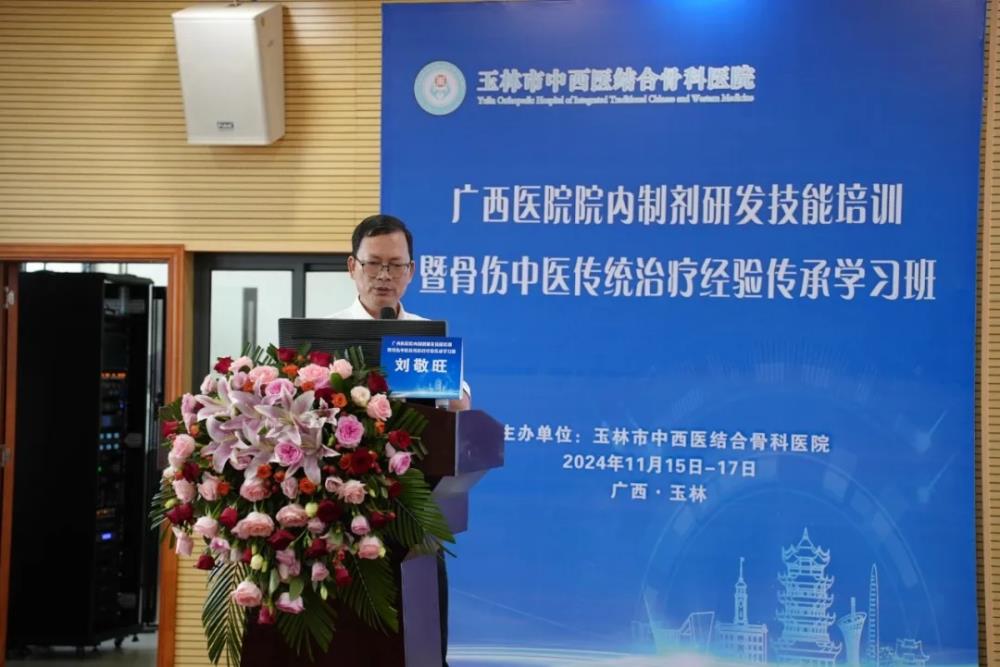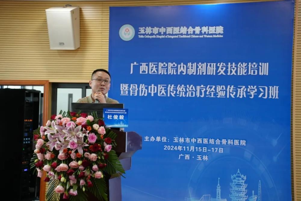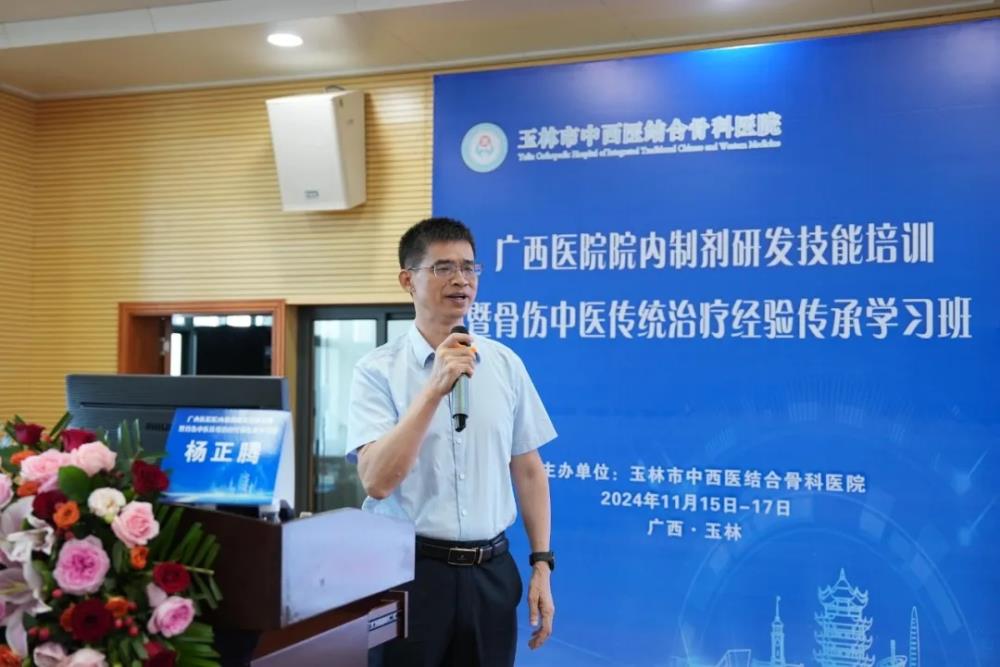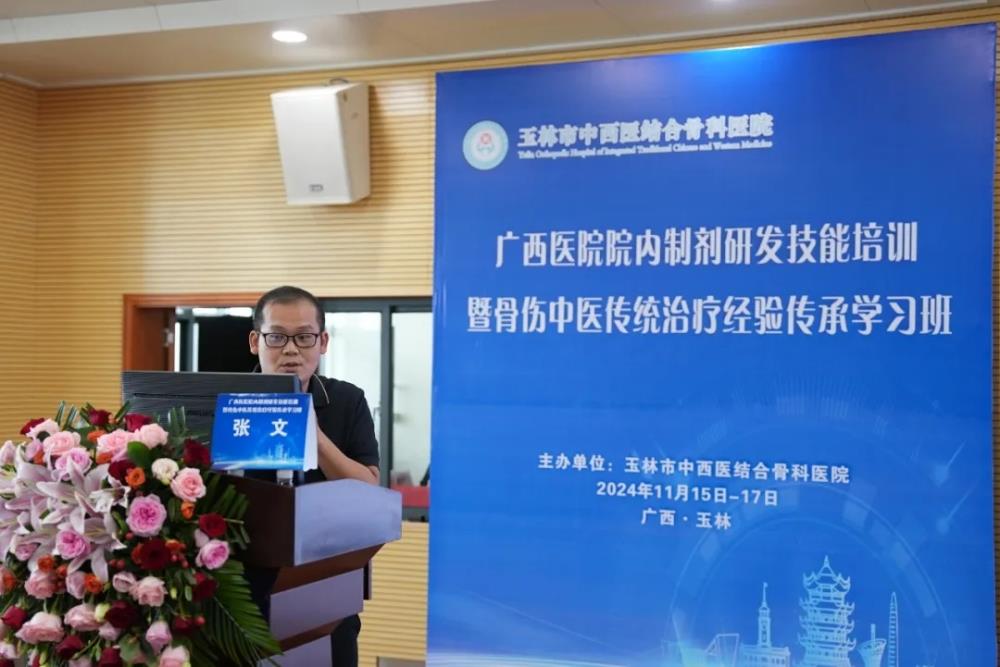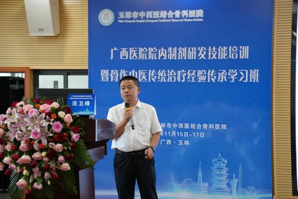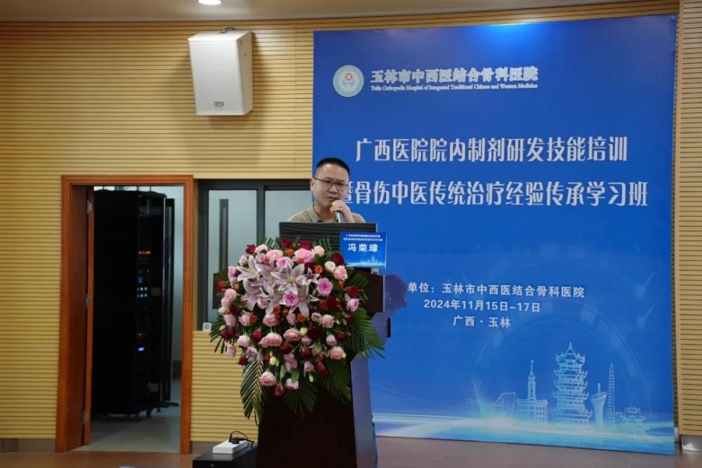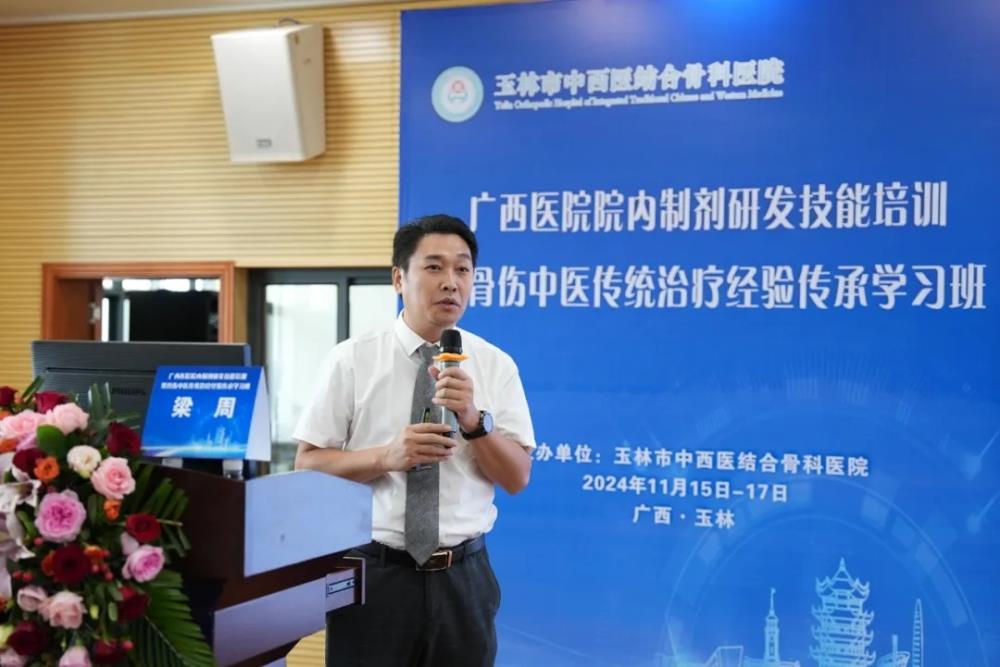 11月16日,广西医院院内制剂研发技能培训暨骨伤中医传统治疗经验传承学习班在玉林市中西医结合骨科医院顺利举行。会议由玉林市中西医结合骨科医院科教科负责人,膝关节外科负责人,主任医师黄宗权主持,来自全区各地的学员相聚一堂,共同交流学习。
