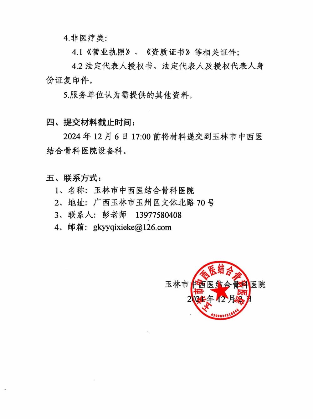 玉林市中西医结合骨科医院关于电子支气管镜和超短波治疗仪的市场调研问询公告