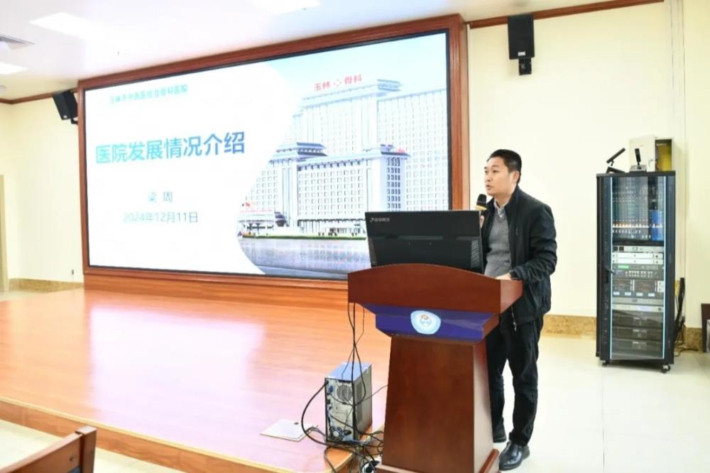 为进一步深化医联体合作,促进医疗卫生技术与经验的交流,实现资源的互补与共享,12月11日,来宾市忻城县中医院院长卢介业一行到我院参观交流,旨在加强两家医院之间的沟通与合作,携手推进中医药事业的发展。玉林市中西医结合骨科医院李开静副院长代表我院全体员工,向远道而来的忻城县中医医院同仁们致以热烈的欢迎。