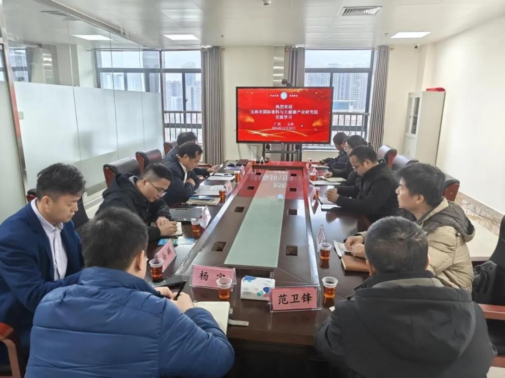 12月26日,玉林市国际香料与大健康产业研究院(以下简称玉林香研院)黄博副主任一行到我院交流洽谈,双方就药食同源推广、医院制剂的研发合作、重大科技项目的申报立项等方面进行深入洽谈。此次洽谈旨在进一步发挥“世界香料之都”、“玉林骨科”这两个玉林市知名牌的优势,进一步促进我院“医院制剂”、“中西医协同诊疗”、“药食同源”与玉林香研院“大健康产业领域”、“特医食品”、“品种选育及组培”、“全产业链标准化”等方面的技术创新与协作,共同推动玉林市地方产业经济发展,提高我市人民健康及生活质量。