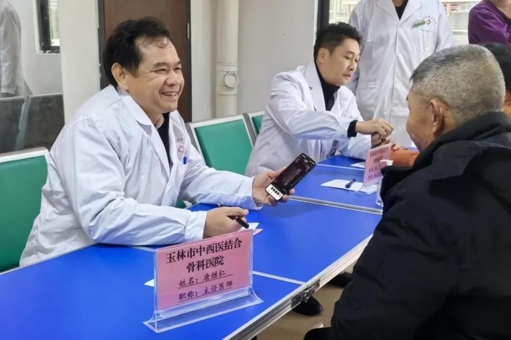 调研结束后,我院院长唐继仁带领医院专家团队进行惠民义诊,对前来咨询病情的群众,现场根据患者的症状、体征,体格检查等综合分析,提供解答疑惑及个性化的健康指导,同时还免费为前来看病、咨询的群众提供自制院内制剂跌打酒及中药茶饮甘润茶,让患者在家门口就能享受到优质的医疗服务,得到患者的普遍欢迎。
