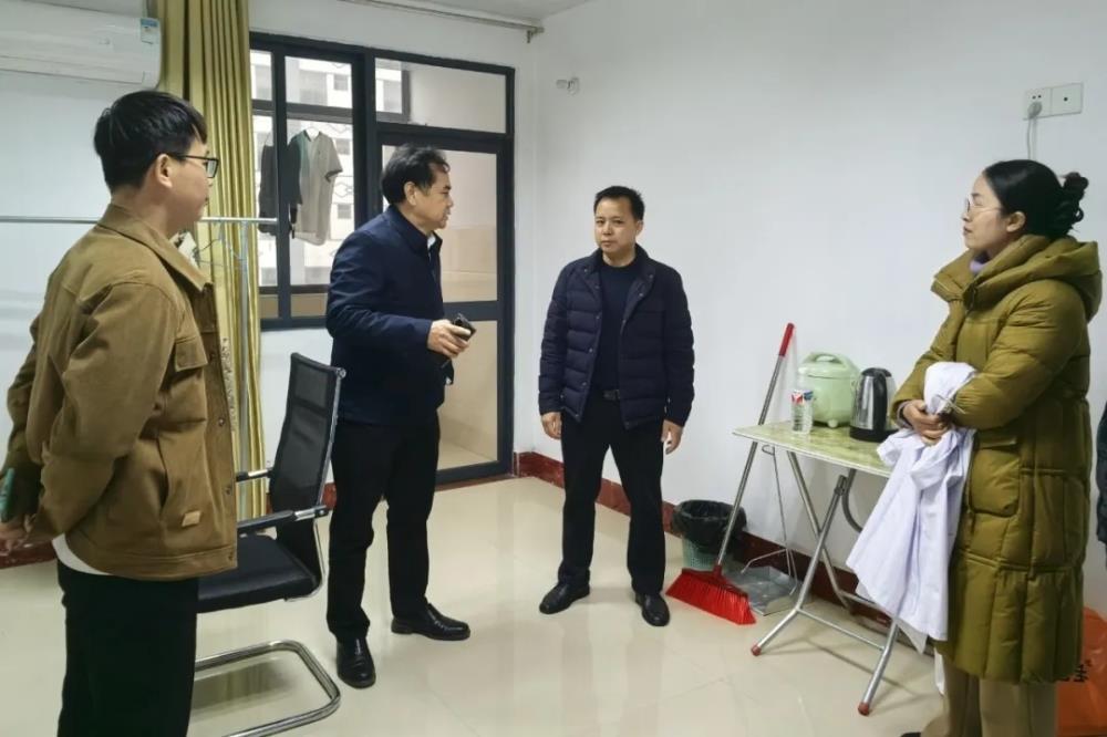 我院院长唐继仁带队对进驻忻城县中医医院对口帮扶医疗骨干人员进行新年慰问,表达医院的关心和关怀,并对他们在忻城县中医医院开展的帮扶工作表示肯定和感谢。