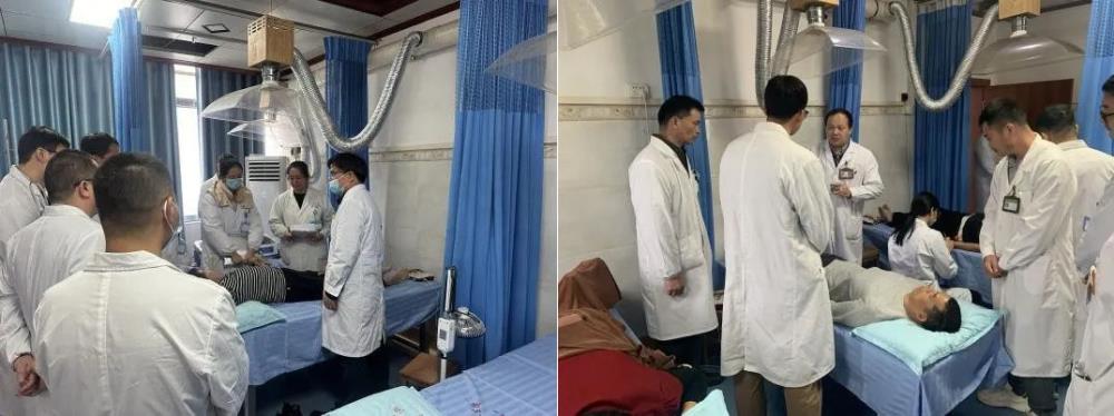 义诊当天正值周六,在门诊,廖庆辉主任仔细询问患者病史,通过“望、闻、问、切”为患者分析病情,提供个性化的治疗方案或健康指导;同时也运用实际病例为基层医生提供诊疗思路。梁倡铭医师现场为需要的群众提供了针灸中医治疗服务,并与基层医生进行深刻的技术交流。廖主任团队还进行义诊查房,在仔细查阅病历资料后,对患者病情进行全面评估,提出了更为精准的诊疗方案,将先进的医疗理念带到基层,为基层医生明晰了诊疗规范及思路,有效地提升了基层医护人员的专业技能和临床水平。