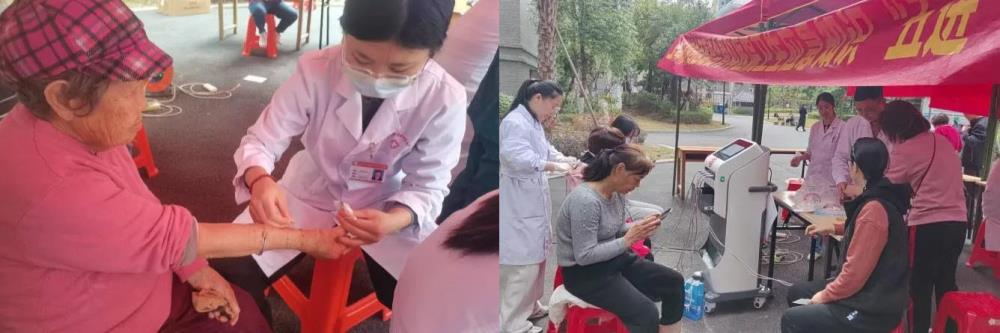 治未病科(中医经典病房)为居民们提供中医咨询和诊疗服务,向居民展示中医特色治疗,包括透药治疗、中药贴敷、针灸、小针刀等,居民争相体验中医特色疗法,感受中医在缓解疼痛、放松身心方面的独特作用。
