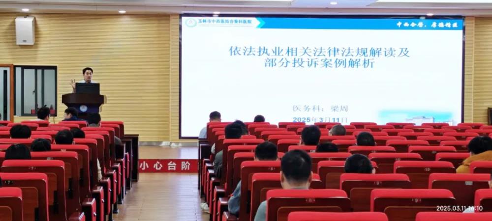 医务科副科长梁周对《医疗机构工作人员廉洁从业九项准则》《中华人民共和国医师法》《医疗机构从业人员行为规范》等医学相关法律法规进行解读,并通过实际案例,分析投诉纠纷产生的原因,使医务人员能够从案例中吸取经验教训。同时,希望医务人员在今后的工作中,能够严格遵守医疗规范,提高服务质量,为患者提供更加安全、优质的医疗服务。