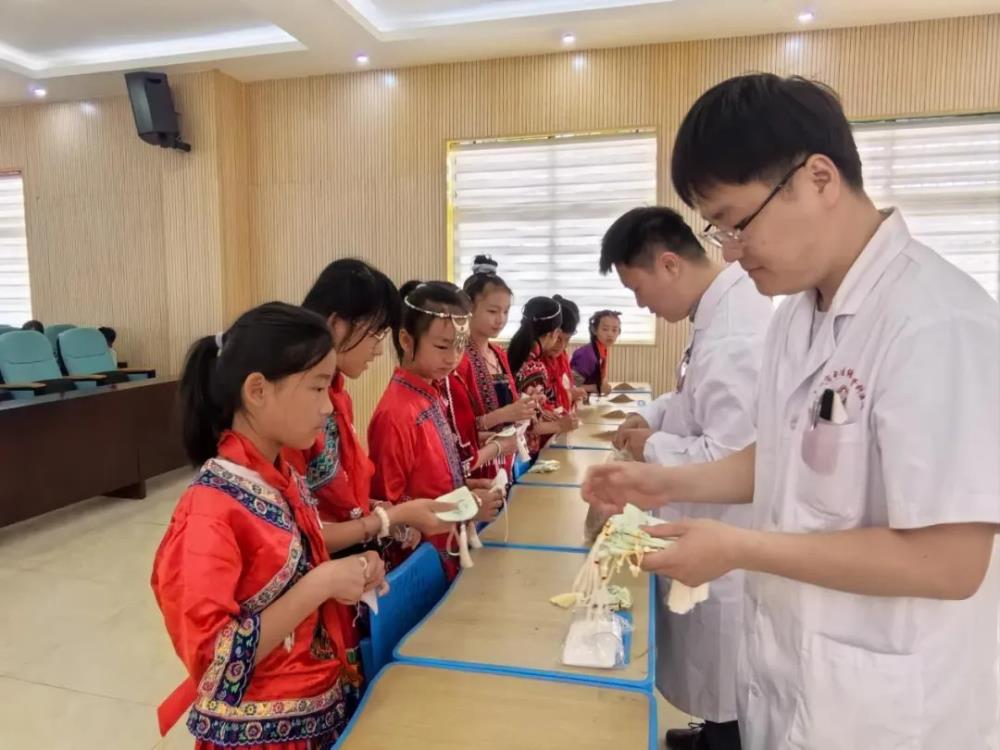 在中医药文化体验活动区,我院罗冬主治医师、郭圣挥医师指导同学们制作中药香囊,通过实践操作让同学们切身感受中医药文化的博大精深。同学们纷纷表示,这样的活动既有趣又有意义,让他们对中医药文化产生了浓厚兴趣。