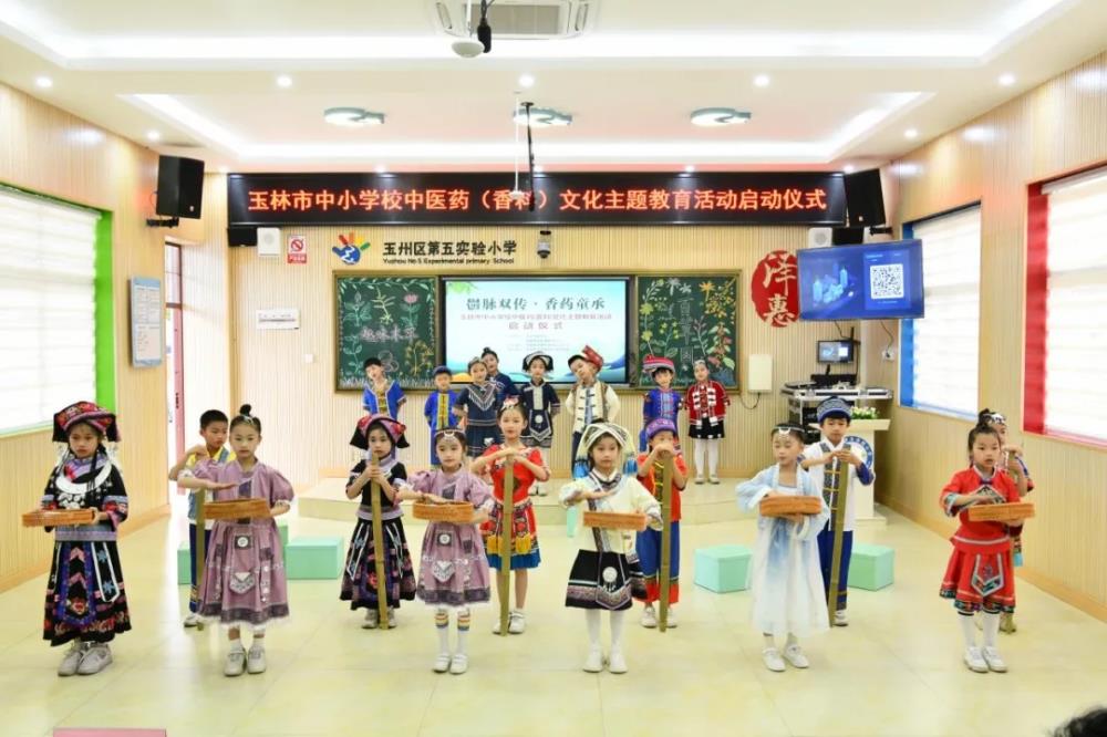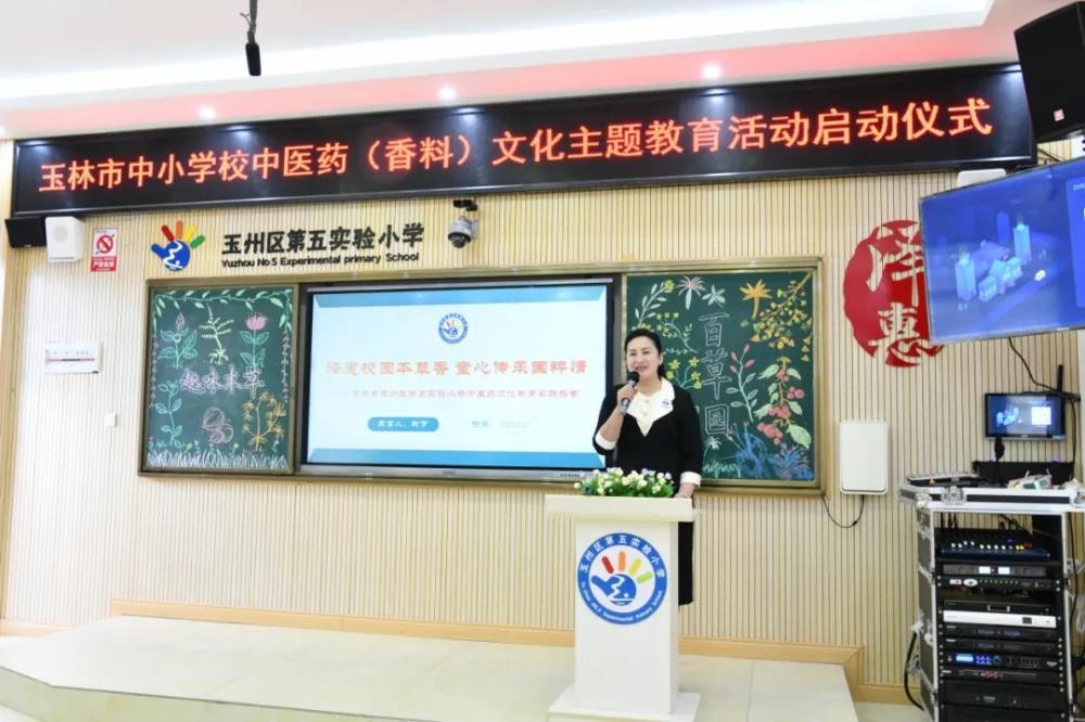 启动仪式上,玉州区第五实验小学的同学们表演了中医药童谣和八段锦表演,他们在充满童趣的韵律表演中演绎着中医药传统文化的独特魅力和深厚底蕴。该校校长封宇向大家介绍了学校中医药文化进校园的活动经验。玉州区第五实验小学将中医药文化融入音乐、体育、劳动教育课程,在校园文化建设上收获了诸多荣誉,并计划邀请中医药专家进校,持续推进中医药文化传承。