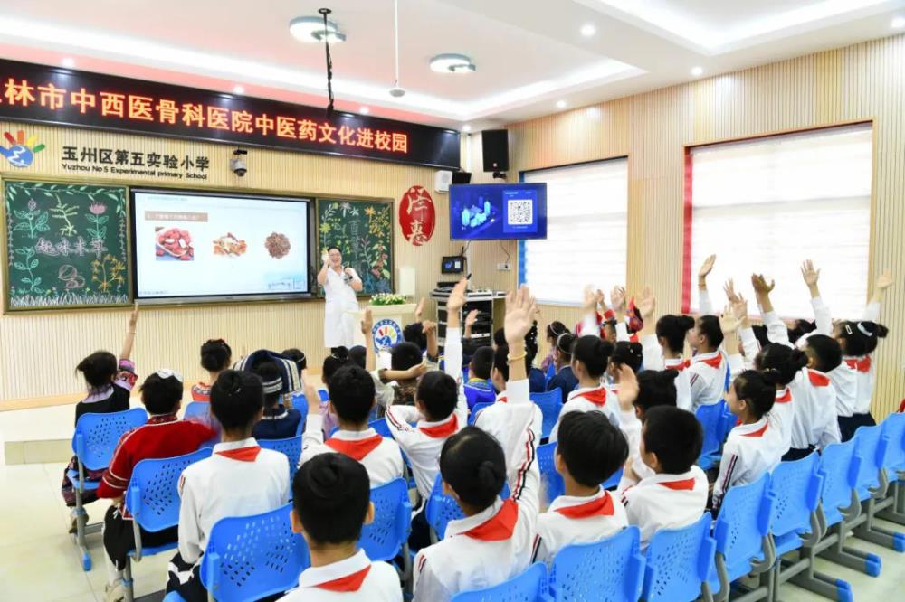 骨科医院药剂科副主任中药师王小新为师生们带来了一场生动的"桂十味"道地药材专题讲座。通过讲解和互动问答,让同学们深入了解广西特色中药材的独特价值。玉州区第五实验小学的同学们还表演了中医药主题童谣和八段锦,展现了学校将中医药文化融入素质教育的丰硕成果。