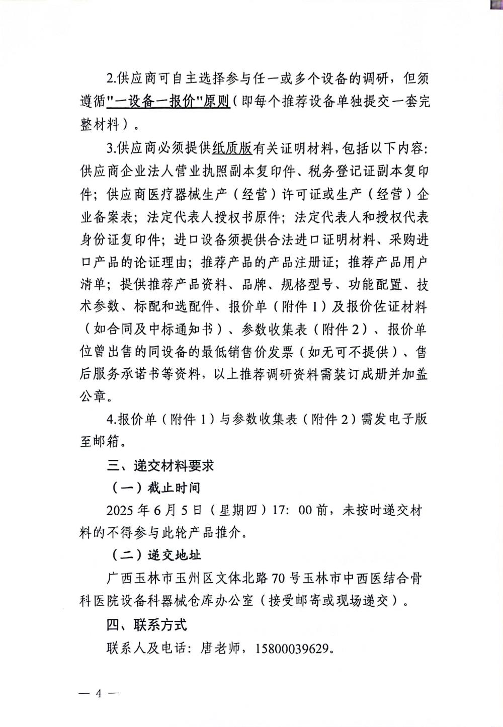玉林市中西医结合骨科医院关于心脏血管彩色多普勒超声检查仪的市场调研公告
