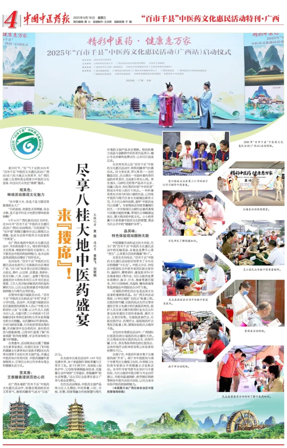 夏日时节,“桂”气十足的2025年“百市千县”中医药文化惠民活动(广西站)在八桂大地正火热展开,为广西民众献上色香味俱全的夏日中医药文化盛宴,向全区民众发出“搂席”邀请。