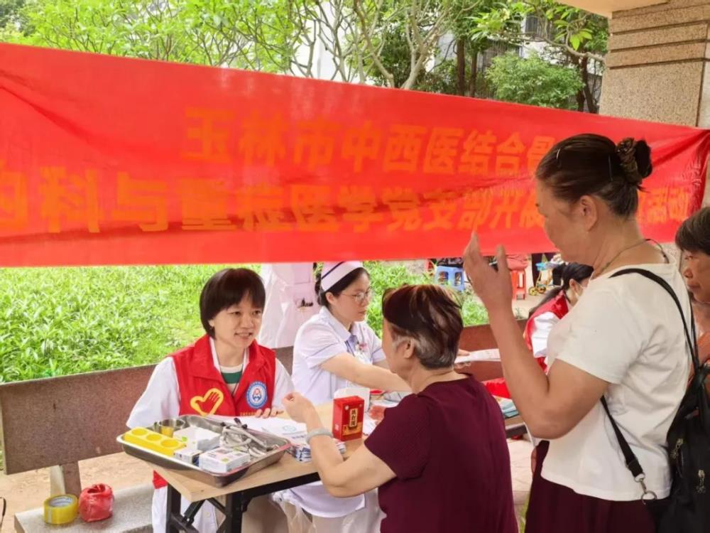 为弘扬中华民族尊老、爱老、敬老的传统美德,普及老年健康知识,提高老年人群的健康保护意识和健康水平。近日,玉林市中西医结合骨科医院内科、老年病科携手重症医学科在富林金桂丽湾社区开展义诊活动,旨在将优质医疗资源送到群众家门口,让市民们在家门口就能享受到专业的医疗服务。