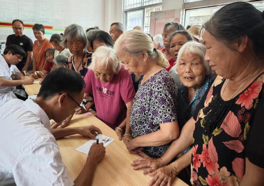 在活动现场,大家分工合作,一些党员为村民免费测量血压,进行中医体质辨识和健康评估,给予科学的饮食建议和用药指导,一些党员向村民展示广西道地药材"桂十味",免费发放医院特色制剂跌打酒、甘润茶,还有一些党员在进行生动的"健康素养66条"、夏季常见病的预防与治疗、慢性病管理以及中医药养生保健等全民健康素养知识讲解,受到村民的热情欢迎和点赞。据统计,当天共为100余名村民提供了健康咨询和检查服务。