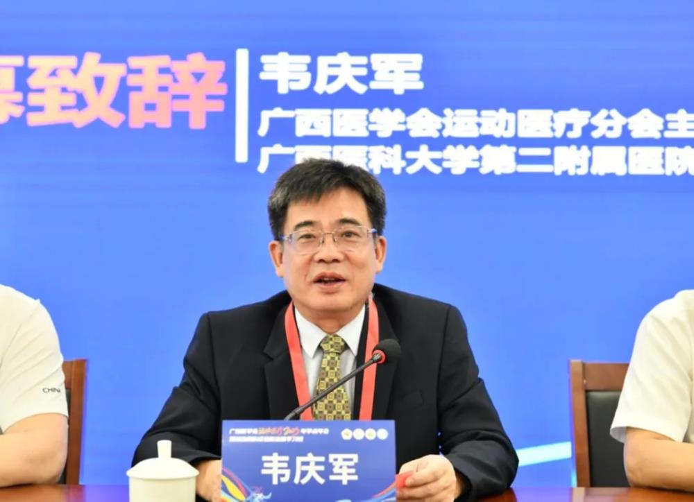 ▲广西医学会运动医疗分会主委韦庆军教授致辞