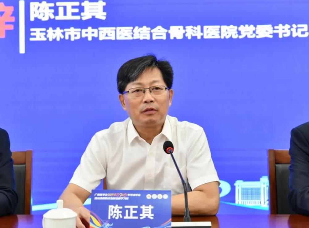 ▲玉林市中西医结合骨科医院党委书记陈正其代表医院致欢迎辞