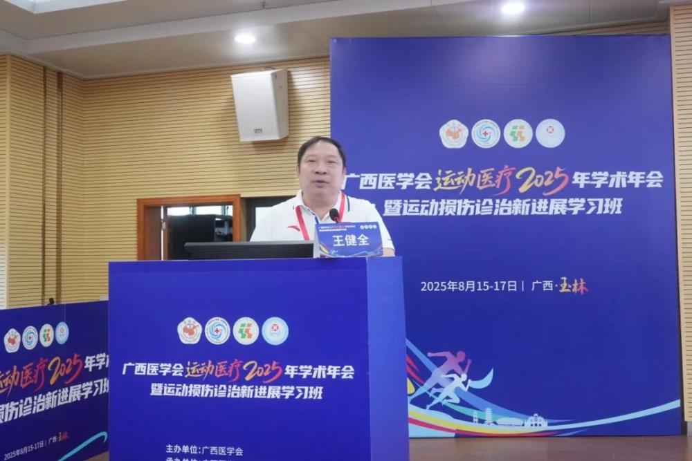 中华医学会运动医疗分会主委王健全教授在致辞中高度评价了广西近年来在运动医学领域的进展,同时分享全国运动医疗前沿趋势,鼓励与会者深化交流、创新实践。