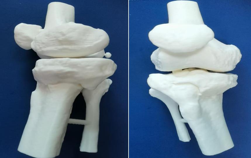 依托这具高仿真模型,经科内严密讨论,反复推敲,最终确定了“膝内侧、外侧入路三钢板固定+植骨”的精密手术方案。这一清晰的规划,瞬间驱散了罗某心中积压已久的阴霾,使其重燃站立希望。