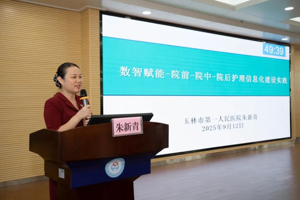 ▲玉林市第一人民医院朱新青主任护师讲授“数智赋能-院前-院中-院后护理信息化建设实践”