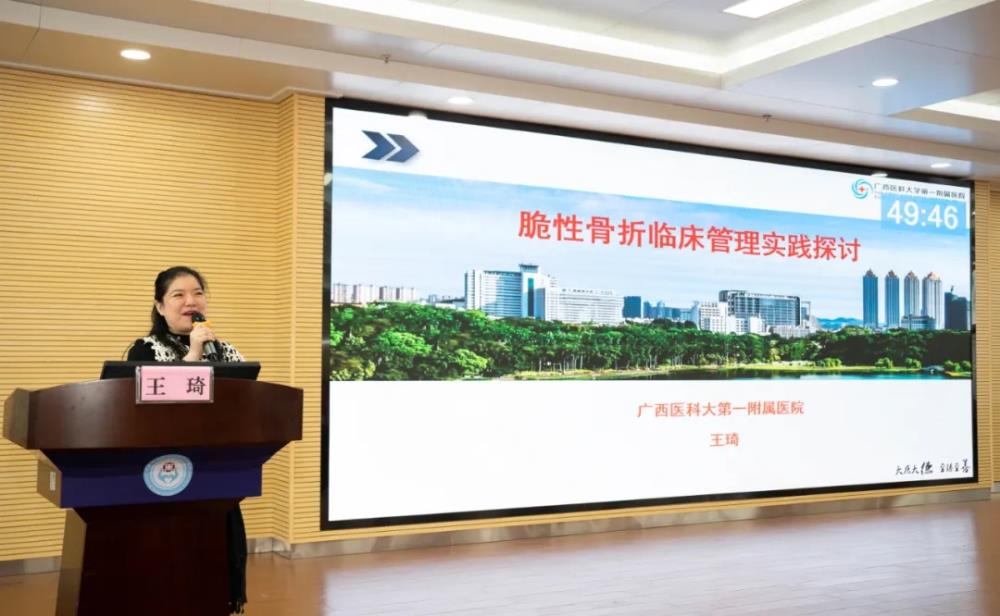 ▲广西医科大学第一附属医院王琦副主任护师讲授“脆性骨折临床管理实践探讨”
