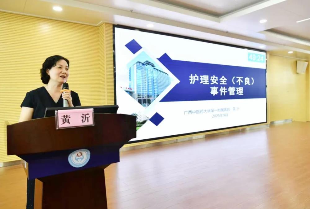 ▲广西中医药大学第一附属医院黄沂主任护师讲授“护理安全(不良)事件管理”