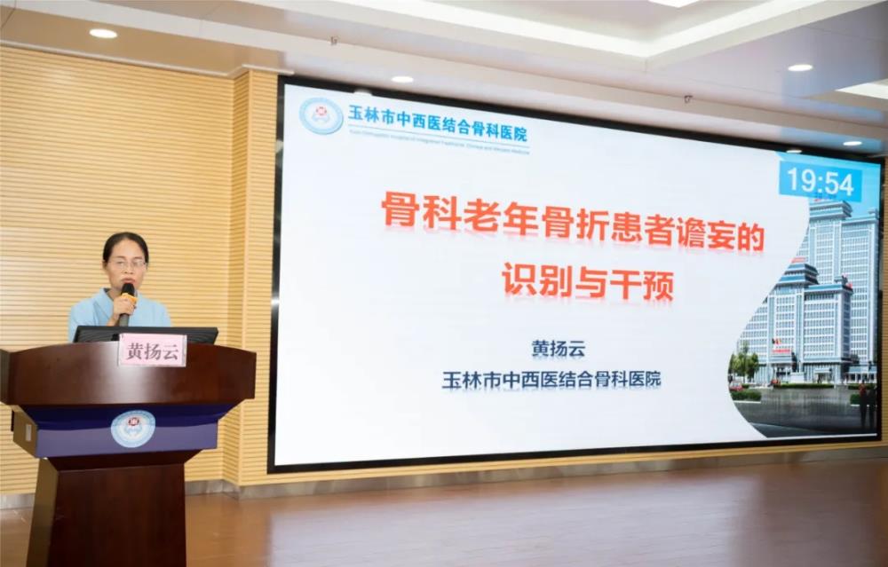 ▲玉林市中西医结合骨科医院黄扬云主任护师讲授“骨科老年患者谵妄的识别与干预”