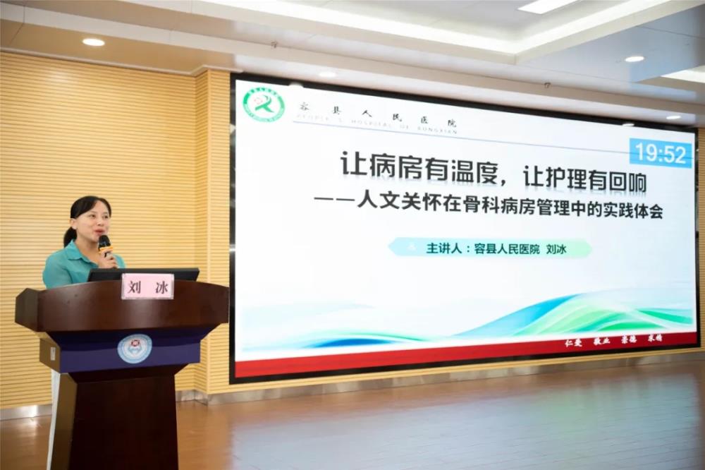 ▲容县人民医院刘冰主任护师讲授“人文关怀在病房管理应用的实践体会”
