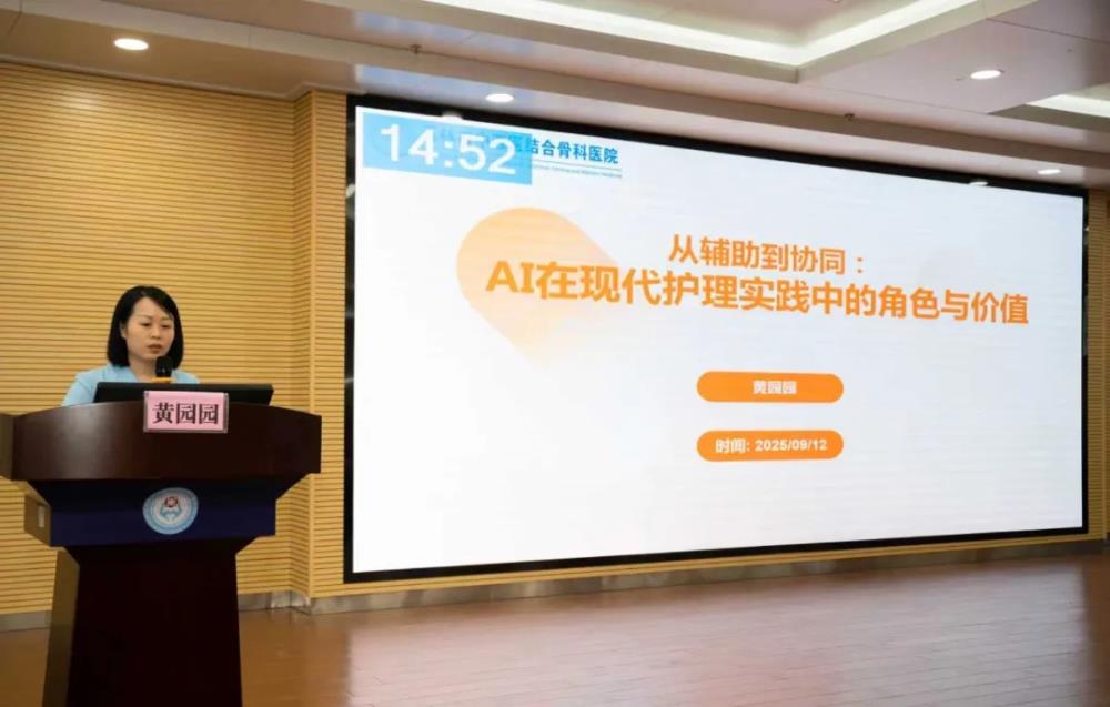 ▲玉林市中西医结合骨科医院黄园园主管护师讲授“从辅助到协同:AI在现代护理实践中的角色与价值”