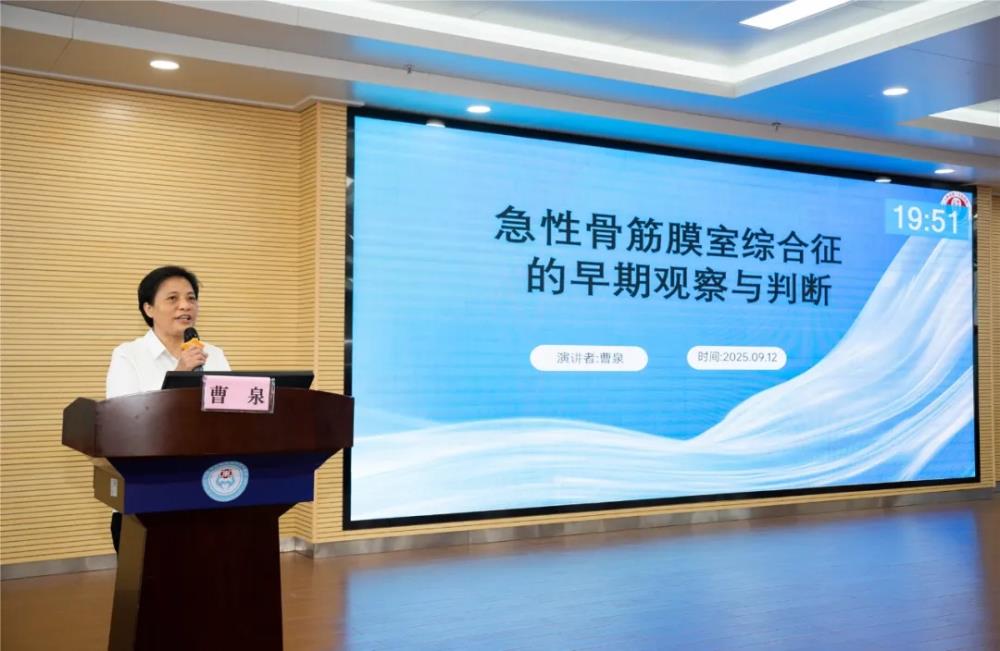 ▲玉林市第一人民医院曹泉副主任护师讲授“急性骨筋膜室综合征的早期观察与判断”