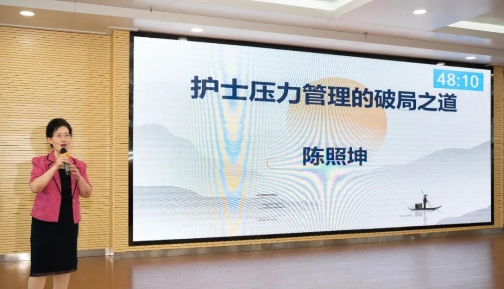 ▲玉林市护理学会监事长陈照坤教授讲授“护士压力管理的破局之道”