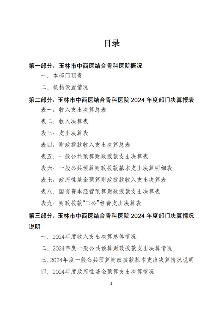 玉林市中西医结合骨科医院2024年度部门决算公开说明