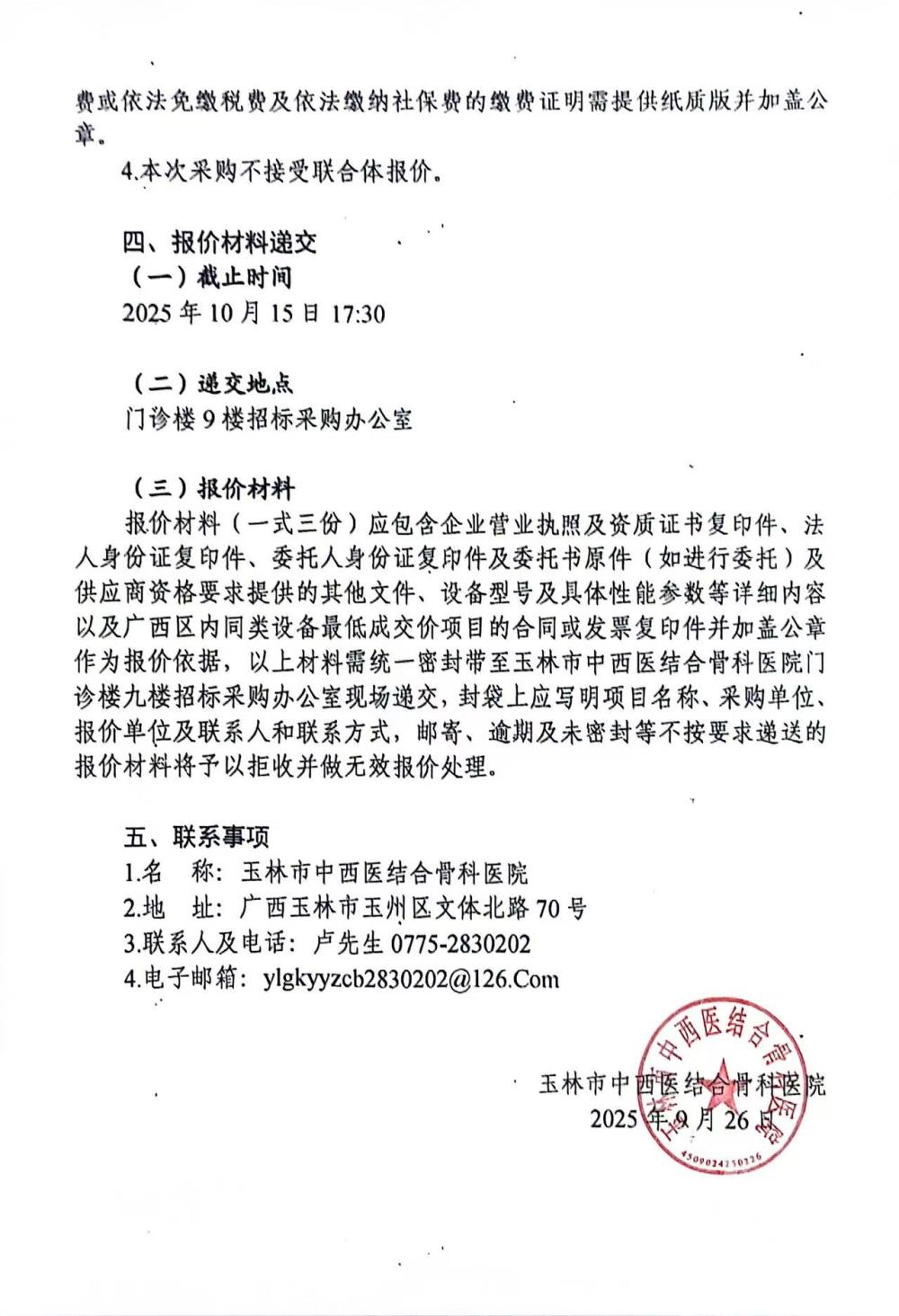 玉林市中西医结合骨科医院银质针导热巡检仪采购项目采购公告