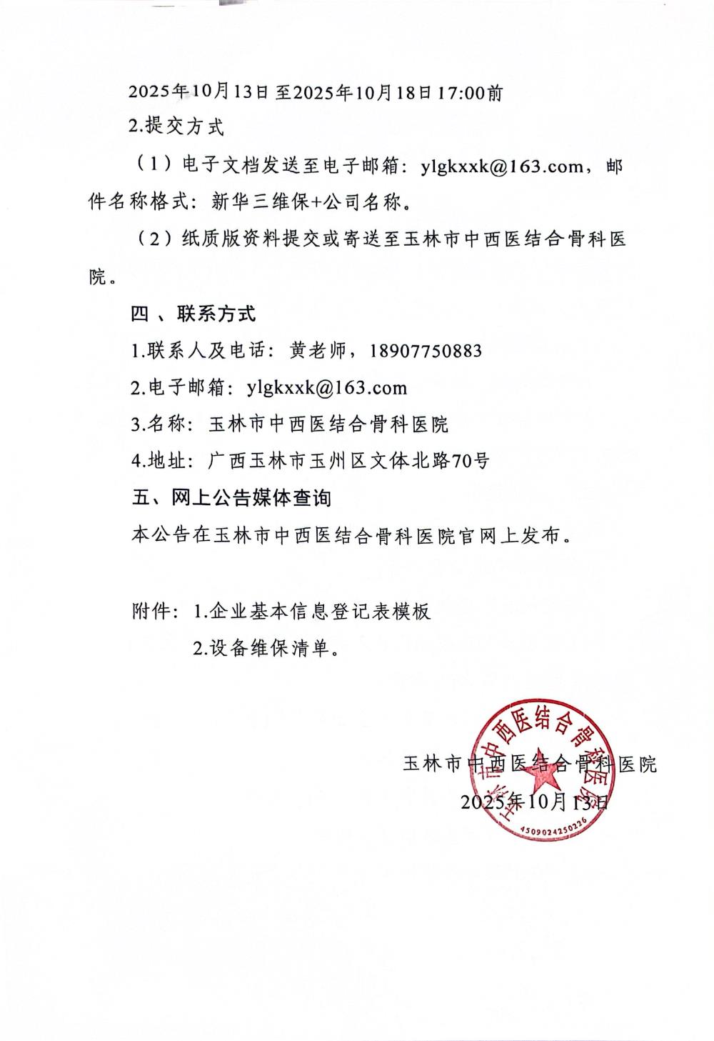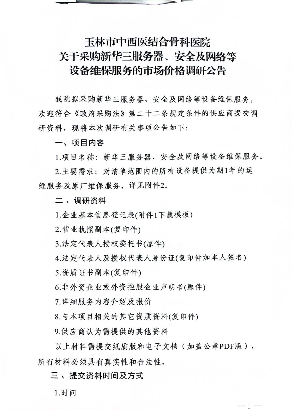 玉林市中西医结合骨科医院关于采购新华三服务器、安全及网络等设备维保服务的市场价格调研公告
