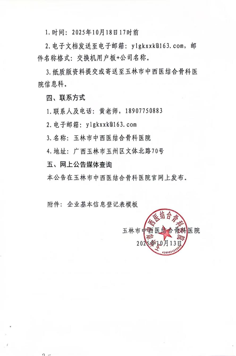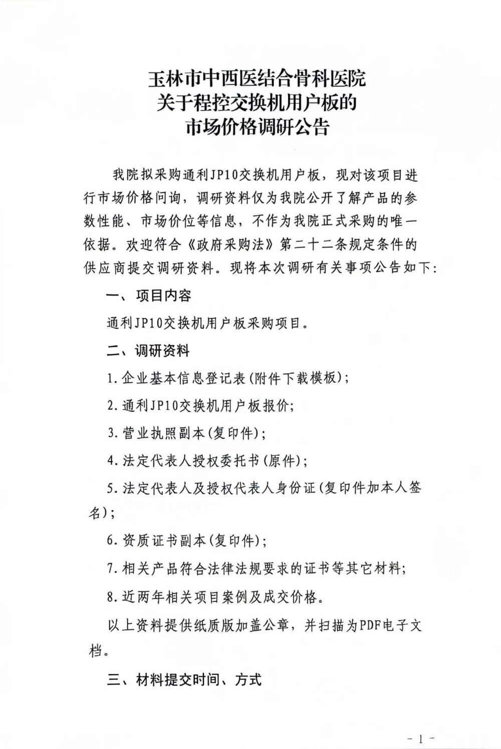 玉林市中西医结合骨科医院关于程控交换机用户板的市场价格调研公告