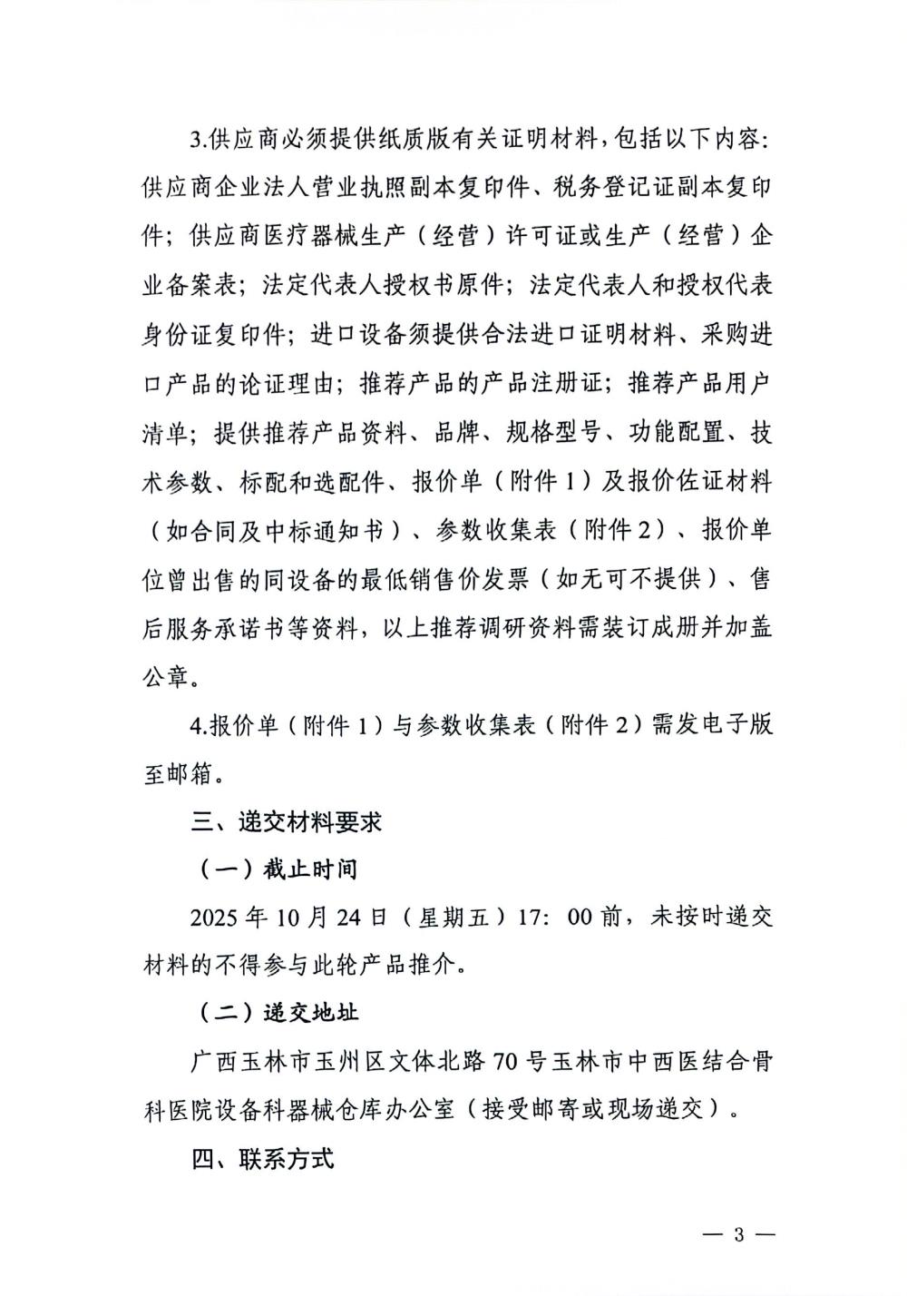 玉林市中西医结合骨科医院关于温针电针综合治疗仪的市场调研公告