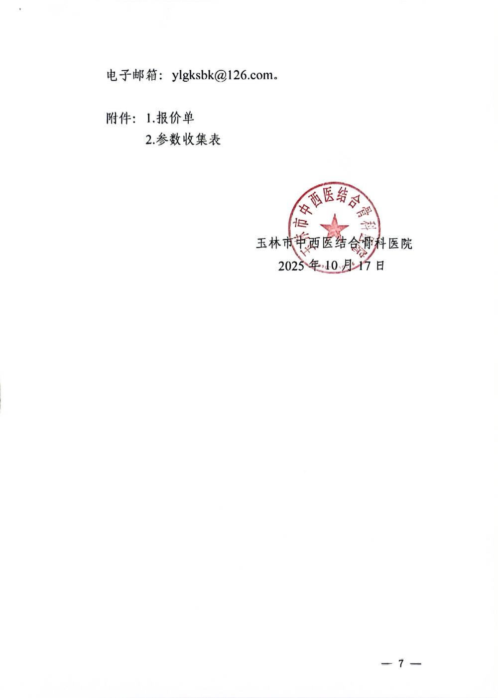 玉林市中西医结合骨科医院关于温针电针综合治疗仪的市场调研公告
