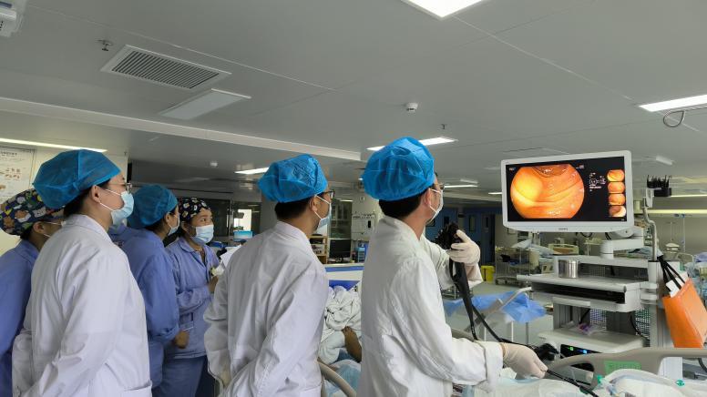 4、消化道大出血患者行床旁胃镜检查止血治疗技术。