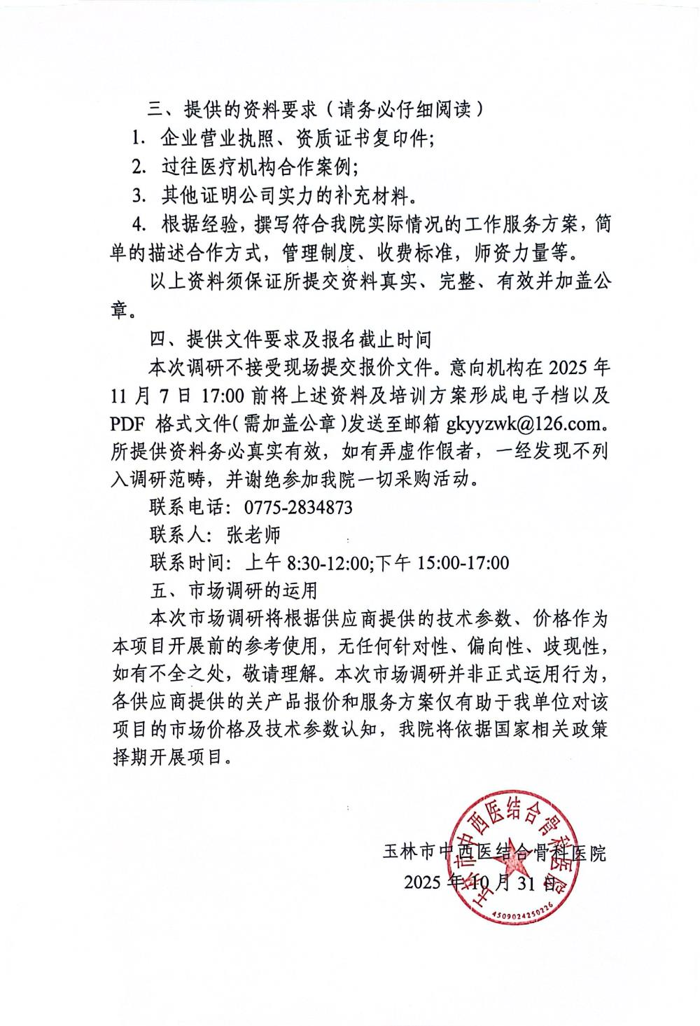 玉林市中西医结合骨科医院关于医用计量器具检定/校准服务项目的市场调研公告