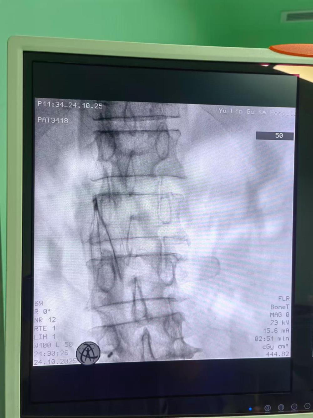 65岁的高先生因跌倒致右髋部、左小腿肿痛、活动受5天于2025年10月19日来广西玉林市中西医结合骨科医院就诊,接诊医生拟以1、右侧髋臼粉碎性骨折2、右侧耻骨上下支骨折3、左腓骨骨折4、左足舟骨骨折5、全身多处软组织损伤及皮肤擦伤6、肺炎7、重度贫血收治骨盆科。入住骨盆科后,骨盆科医疗团队为高先生制定合理有效的诊疗方案。在检查过程中患者下肢静脉彩超显示:右下肢腘、胫后、腓、小腿肌间静脉血栓形成(不完全阻塞)。这个检查结果一出,骨盆科整个医疗团队犯难了,高先生的病情又必须手术治疗,但是新发的下肢血栓又是骨折手术的禁忌症,必须要解决好血栓这个问题才能处理骨折的问题。以往这类型的患者,都是到综合医院先处理好血栓问题,再回来处理骨折的问题。往返两家医院的奔波,办理手续的繁琐,以及患者要面对转运过程中血栓脱离的风险。林林总总的问题困扰着每一位患者。同样也让高先生及家属犯难。经过主管医生与高先生及家属的良好沟通,高先生及家属对病情有了充分的认识,决定让我院介入团队展开治疗。为确保手术万无一失,骨盆科李振宏主任带领医疗团队术前开展研讨,结合患者病情制定了详细的手术方案,并与患者及家属充分沟通手术风险与流程。于2025年10月24日在局部麻醉下行下肢静脉滤器置入术 、髂静脉造影术、下腔静脉造影术。仅用30分钟就顺利完成手术,术中出血约5ml。患者术后无不良反应,并于3天后顺利进行右髋臼骨折切开复位内固定术。现患者积极配合康复治疗,疗效显著。
