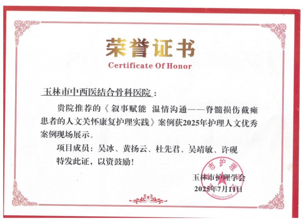8.2025年获玉林市护理学会护理人文优秀案例